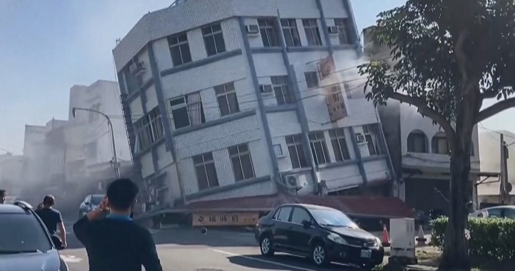 Video on social media showed a building in Hualien that appeared to be nine stories tall partially collapsed and left standing at an angle. Another, appearing to have five floors, was similarly situated.